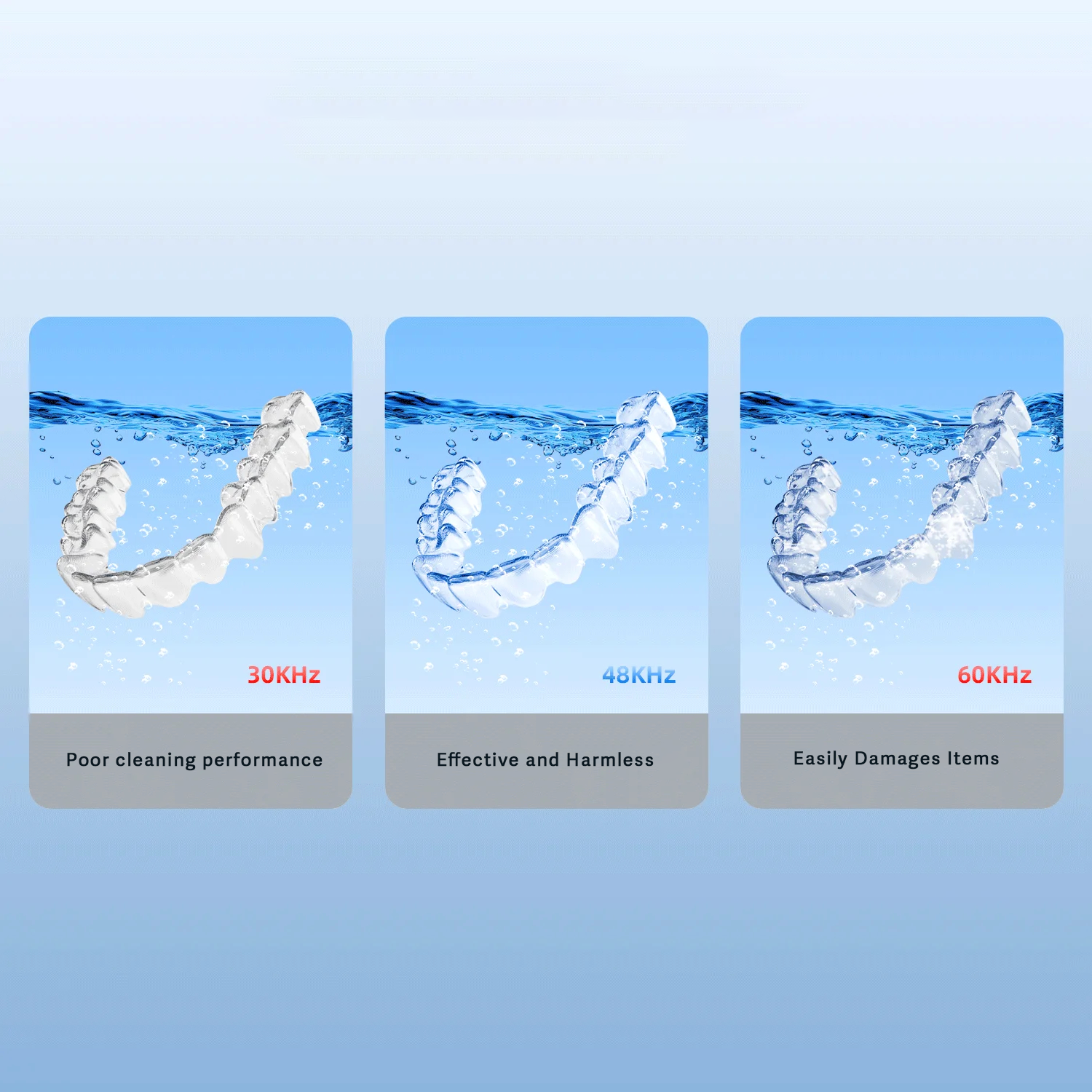 Experience 48000 Hz ultrasonic power for 360° deep cleaning that leaves items spotless and gently cared for.